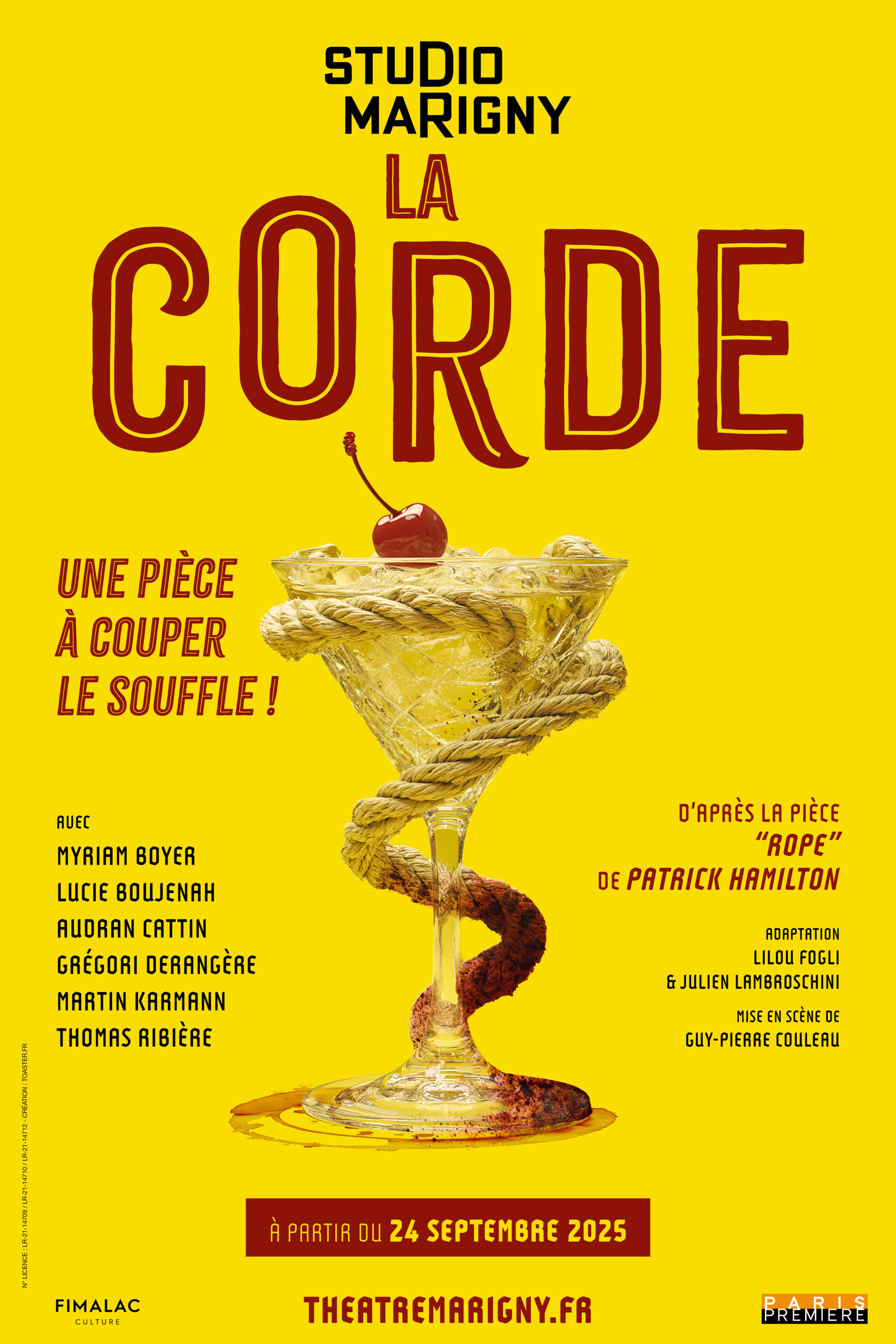 Nouvelle création pour la rentrée 2025 ! “La Corde”, un thriller policier en 3 actes, adapté de la pièce “The Rope” de Patrick Hamilton et rendu mythique par le maître du suspense, Alfred Hitchcock. Dans cette nouvelle version modernisée, les spectateurs seront immergés dans un huis clos machiavélique et comique, entre jeu et manipulation. Qui vaincra entre la morale et le pouvoir ? Venez le découvrir à partir du 24 septembre 2025, sur la scène du Studio Marigny.