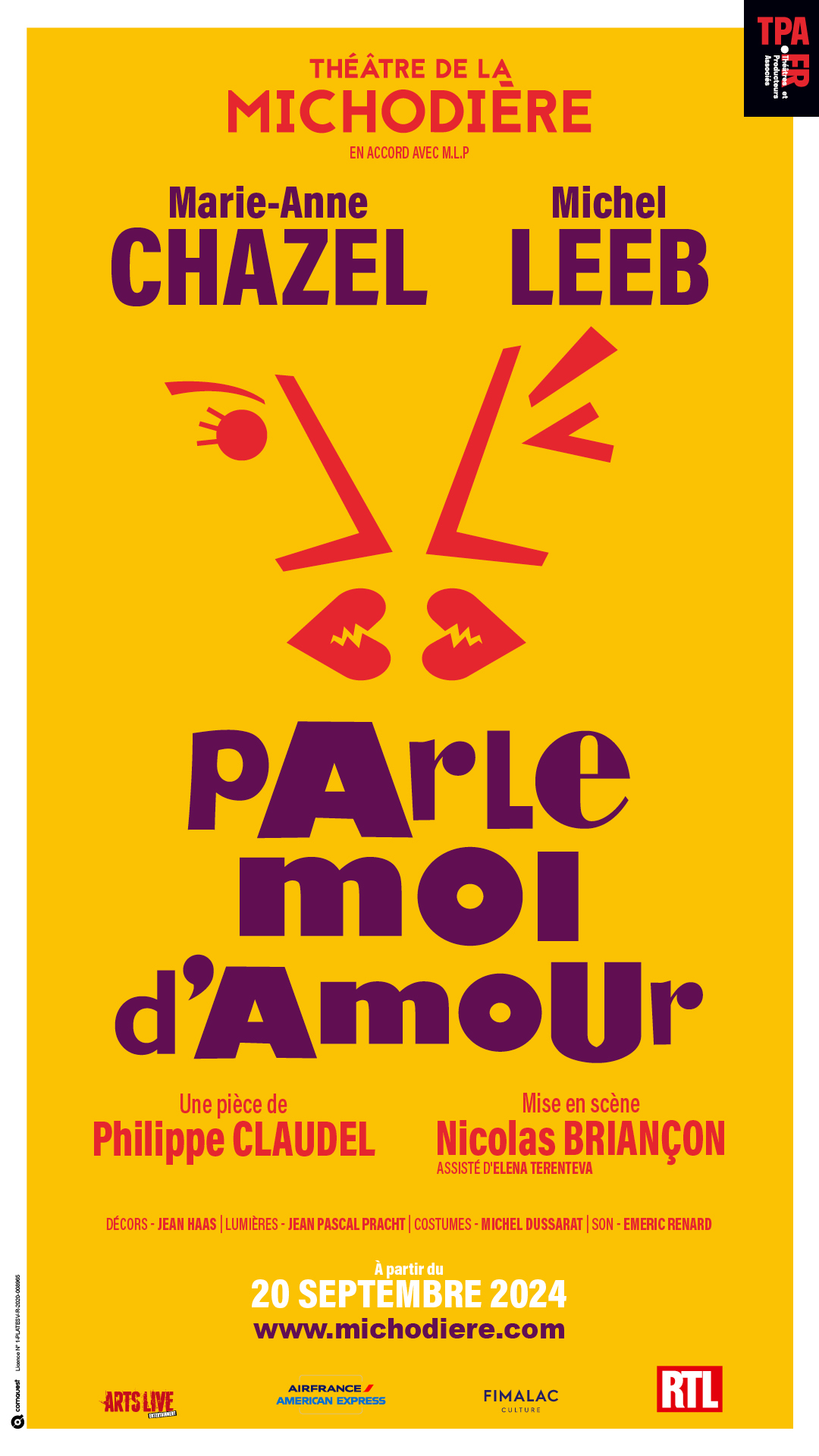 Retrouvez à partir du 20 septembre 2024, Marie-Anne Chazel et Michel Leeb dans « Parle-moi d’amour », au Théâtre de la Michodière.