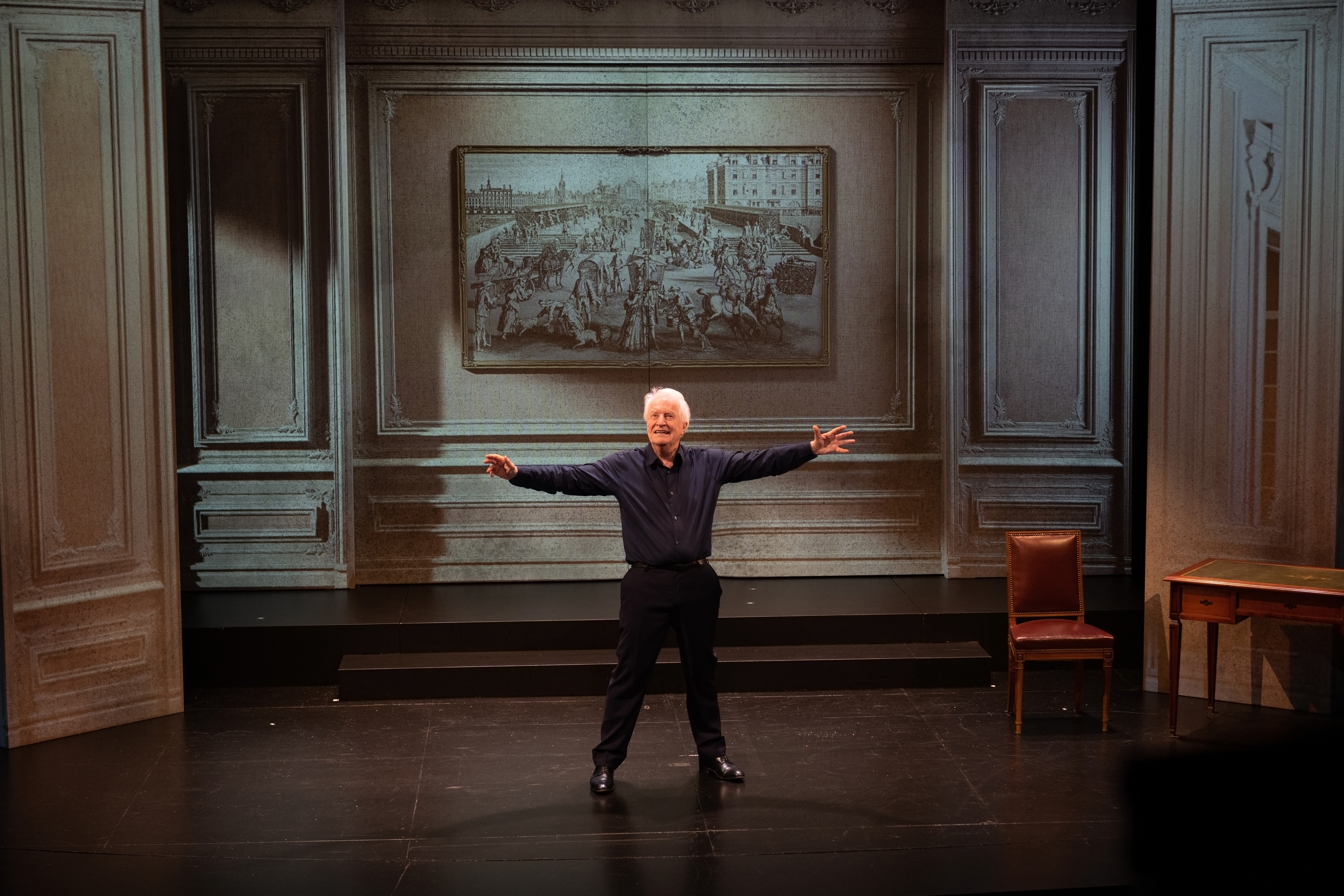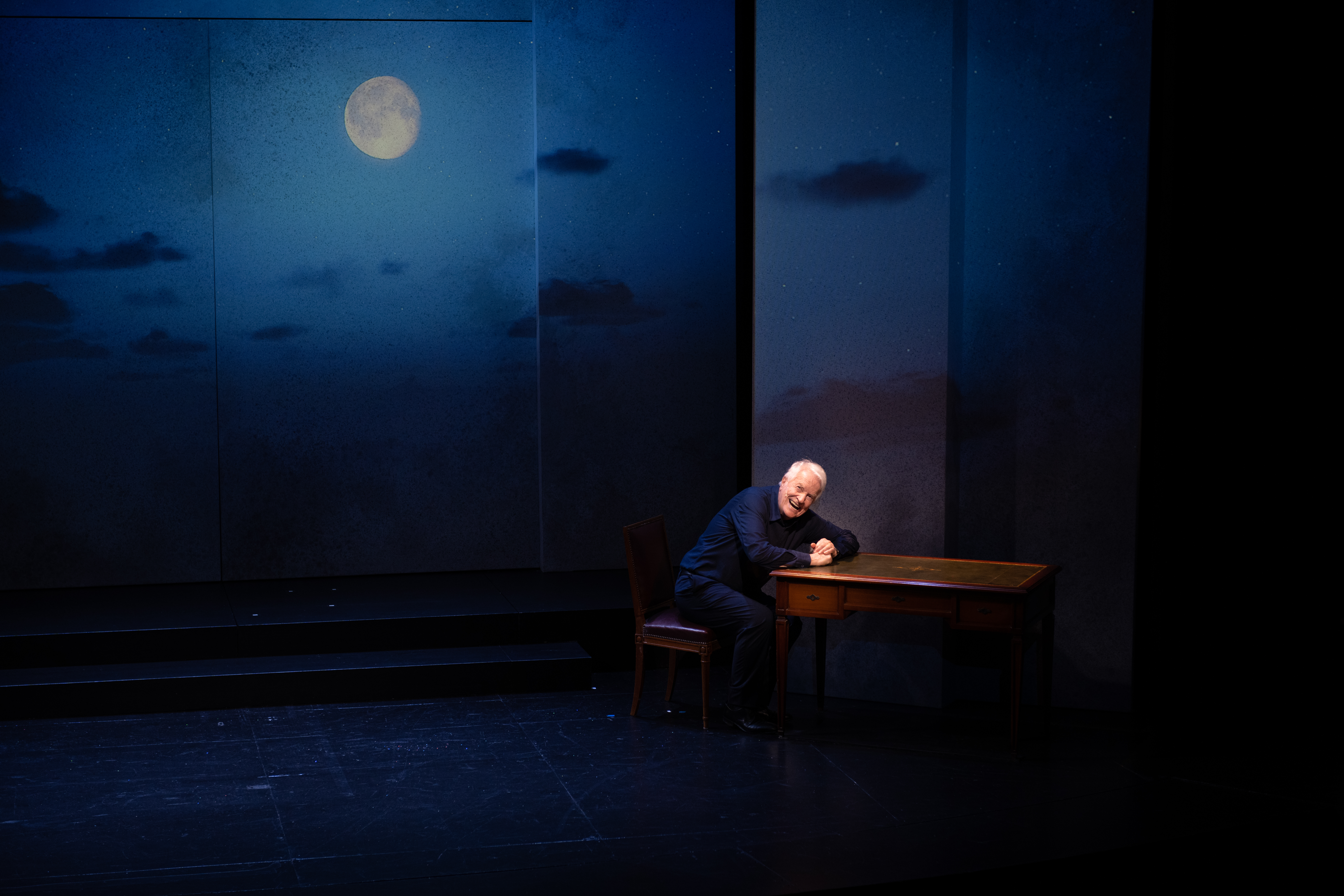 De sa voix délicieusement magnétique, de son regard perçant d’acuité, de son expressivité hors du commun, il nous charme et nous ensorcelle pour nous entrainer dans son imaginaire sans limite en nous révélant avec gourmandise ce qui constitue la substantifique moëlle des grands textes ou la fulgurance des grands esprits. C’est un véritable bonheur que de retrouver cet artiste d’exception sur la scène de la grande salle du Théâtre Marigny pour ce voyage sens dessus dessous dans les méandres de la littérature et de la féérie…